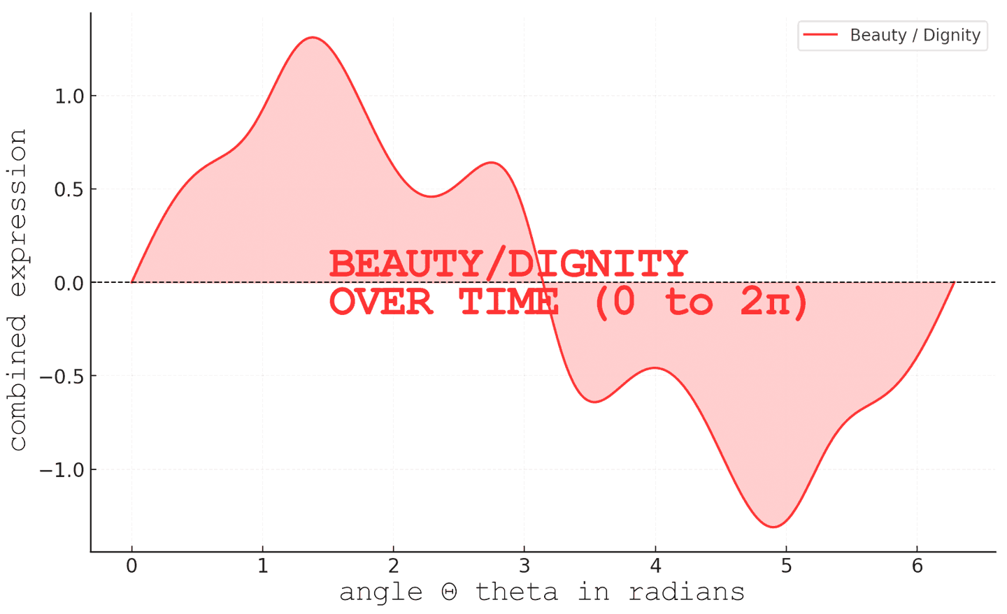 A sine wave of beauty, divided by a modulating dignity factor, reveals oscillating peaks and valleys—moments of beauty shaped by dignity’s fluctuations. This interplay mirrors life’s jagged yet interdependent relationships.